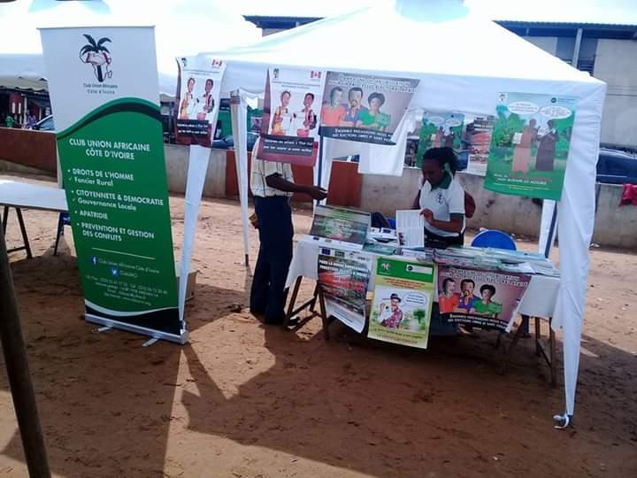 Le Club Union africaine gère des campagnes de sensibilisation et d’éducation civique sur le processus électoral, de droits de l’homme, de la cohésion sociale, contre l’utilisation du travail des enfants sur les exploitations agricoles, l’éducation pour la paix et la non-violence dans les écoles, de connaissance du code foncier, de division des terres des villages, la délivrance de certificats fonciers et sécurisation des terres rurales droits.
